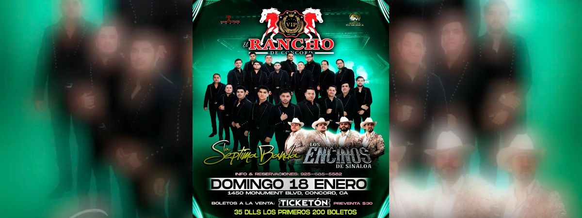 Don't miss LA SEPTIMA BANDA & LOS ENCINOS DE SINALOA happening at El Rancho De Concord, Concord, CA, United States on 2026-01-18T22:00:00-08:00. A great evening with good music and a laid-back atmosphere awaits you. Invite your friends for a night out! **Event Details:** * **Location:** El Rancho De Concord, Concord, CA, United States Claim your ticket to be at the forefront of exciting innovation. #LASEPTIMABANDA&LOSENCINOSDESINALOA #event #exciting #ConcordEvents #CAEvents