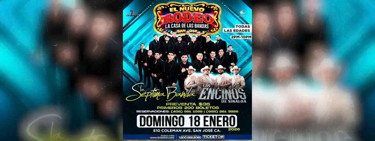 Don't miss 'LA SEPTIMA BANDA & LOS ENCINOS DE SINALOA', the premier exciting event happening at El Nuevo Rodeo - San Jose , San Jose, CA, United States. This event showcases the best talent and expertise in the field. Immerse yourself in a world of opportunities and cutting-edge ideas. Book your attendance today and be part of something extraordinary. #LASEPTIMABANDA&LOSENCINOSDESINALOA #event #exciting #San JoseEvents #CAEvents