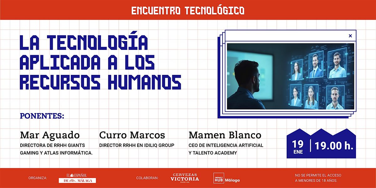 Arrancamos el 2026 y vuelven los Encuentros Tecnológicos de El Español de Málaga en Cervezas Victoria. Este 19 de enero a las 19:00 celebraremos nuestra XXXVIII edición con un tema que está de máxima actualidad: "La tecnología aplicada a los Recursos Humanos". Contaremos con la participación de tres grandes expertos como: