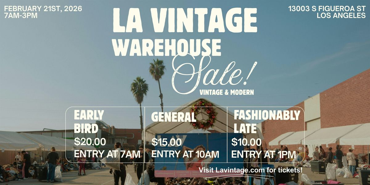 All sales are final—no refunds, returns, or exchanges. Only small bags (like fanny packs) are allowed, and small carts or wagons are welcome, but please be considerate of others. All bags and containers are subject to inspection. We reserve the right to refuse service. There’s plenty of vintage for everyone, so be kind and respectful while shopping. Children under 10 must be with an adult at all times. Parking is limited, and LA Vintage is not responsible for vehicles. Security will be present to encourage a safe experience for all. By attending, you assume all risks and release LA Vintage from liability for any injury, loss, or damage. We accept cash, credit/debit cards, Venmo, Zelle, and Apple Pay (no PayPal). Tickets are available only on Eventbrite— DO NOT purchase from other sources, as they will not be considered valid, and entrance will be denied. If you are feeling unwell, please stay home and follow local health guidelines. Although tickets are required to attend, this is a public event. Your voluntary attendance at this public event will be considered to also be your consent to be photographed or filmed for promotional purposes.