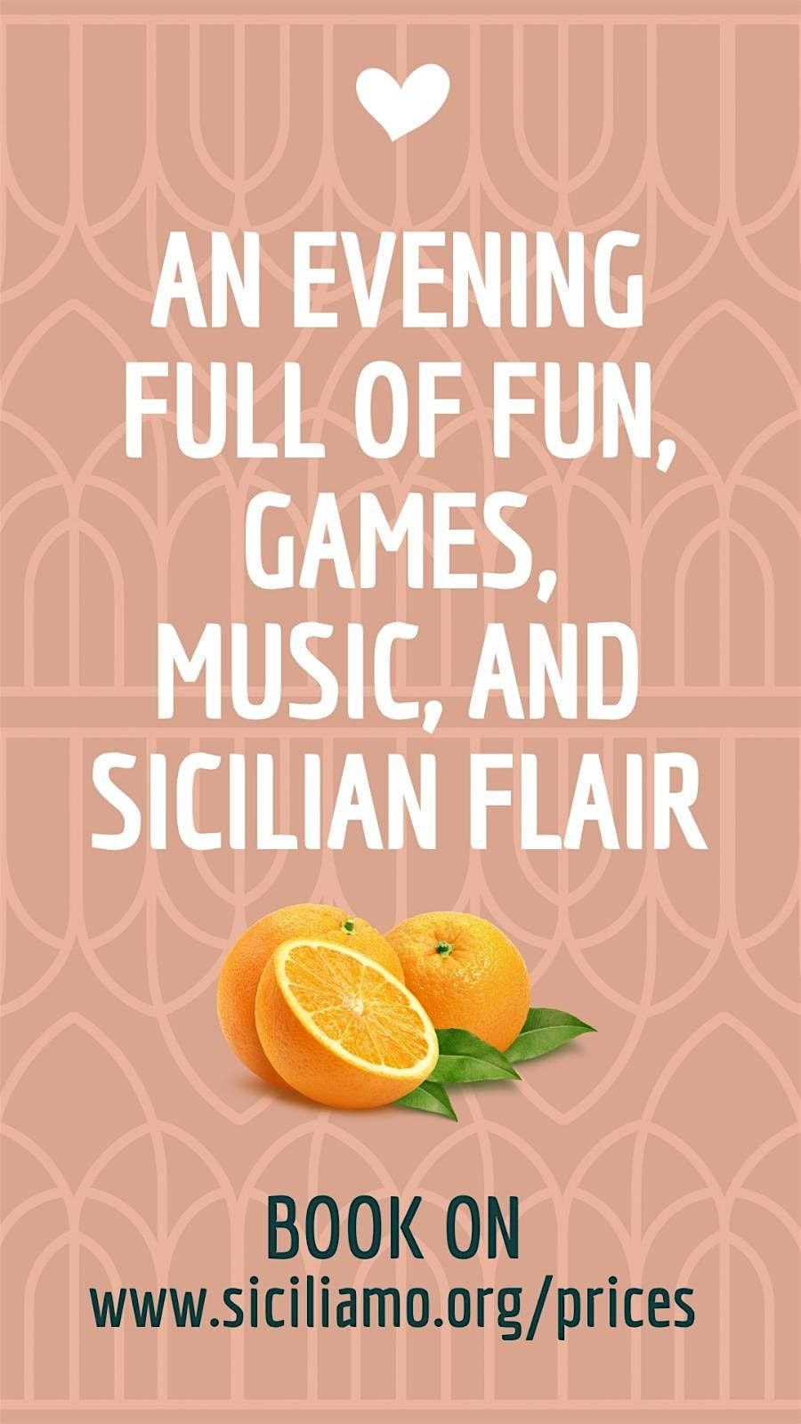 A night to laugh, eat, drink, and celebrate — bold, joyful, and unapologetically Sicilian.