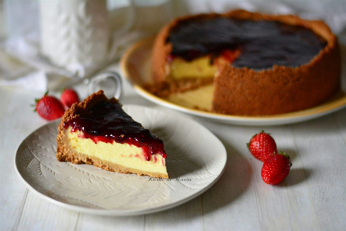 Faremo una base con biscotti e burro. Per la farcitura utilizzeremo la spettacolare Ricotta di Rosola. E per la marmellata da spalmare sopra a fine cottura ci faremo consigliare da Frutti dal Bosco.