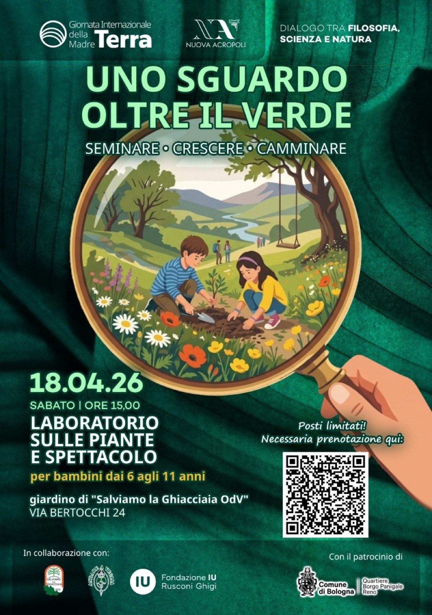 Nuova Acropoli Bologna O.d.V. invita la cittadinanza come ogni anno ad un’iniziativa per celebrare il nostro pianeta, in occasione della Giornata Mondiale della Terra indetta ogni anno dalle Nazioni Unite. Questa ricorrenza nasce con l’obiettivo di riportare l’attenzione sull’ambiente e sulla sua salvaguardia e cade ogni anno un mese e un giorno dopo l'equinozio di primavera: per il 2026, il 22 aprile.