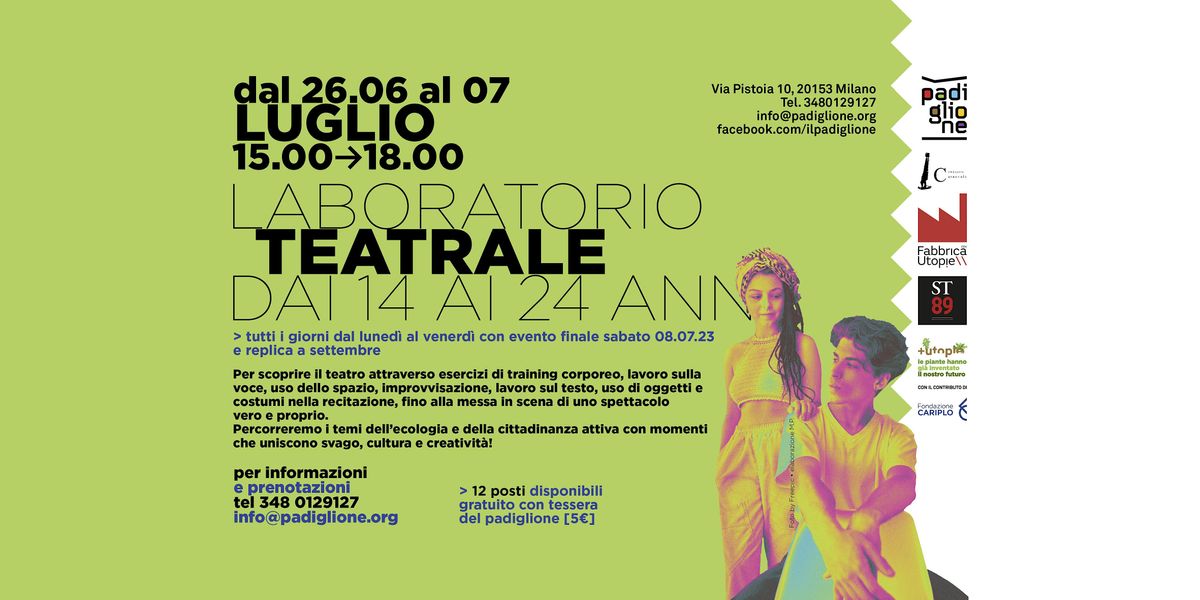Inizia lunedì 26 giugno il laboratorio teatrale gratuito per ragazzi dai 14 ai 24 anni condotto da Compagnia Carnevale.