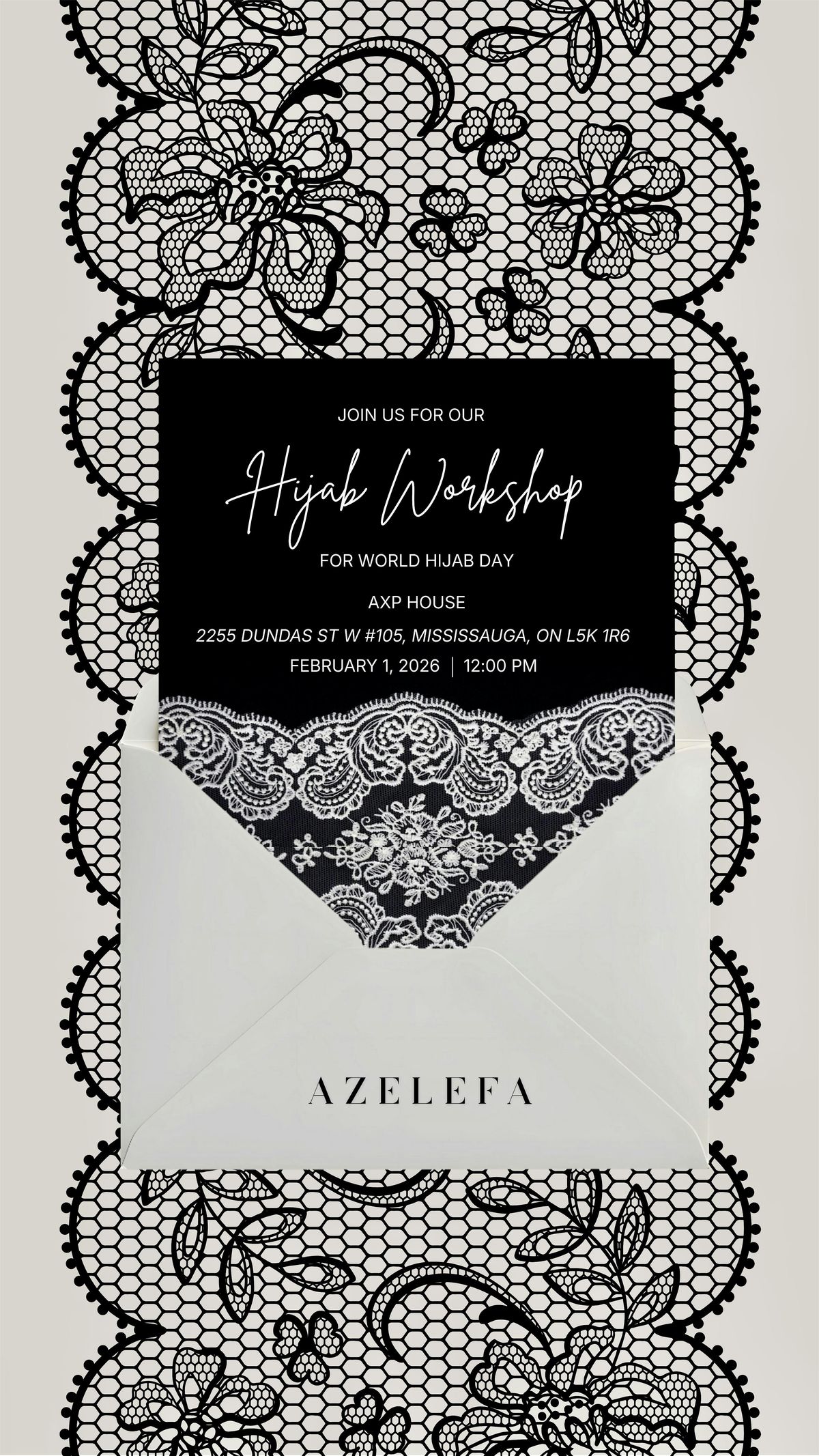 PS: You’ll leave with a custom Azelefa lace modal & a little surprise! 😉