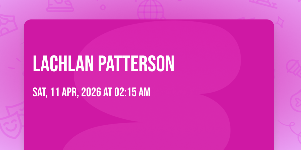 ๐ Location: 47.667, -122.317๐ Welcome to Lachlan Patterson, where the impossible becomes possible and dreams take flight! ๐๏ธ Join us at Laughs Comedy Club in the heart of Seattle, WA for an event that will redefine your expectations. ๐ On April 11th, 2026 at 02:15 AM, witness the transformation of space and time into something truly magical. โจ It's a curated experience combining the best of innovation, entertainment, and community spirit, creating moments that will be remembered for years to come. Whether you're a first-time visitor or a seasoned enthusiast, prepare to be amazed. ๐ Book now to ensure your place in this unforgettable experience!