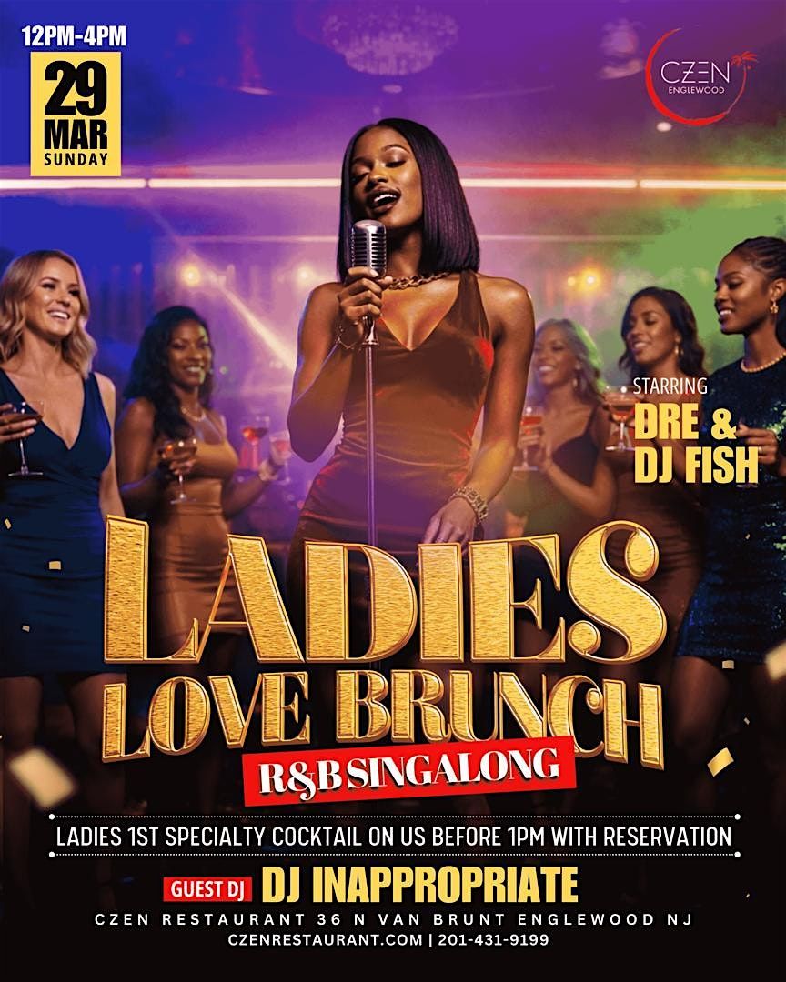 On Sunday, March 29th from 12PM–4PM, CZEN Restaurant in Englewood turns all the way up for LADIES LOVE BRUNCH: R&B Singalong. Think feel-good R&B anthems, a live mic moment, high-energy DJs, signature cocktails, and a room full of grown, stylish women singing their hearts out.