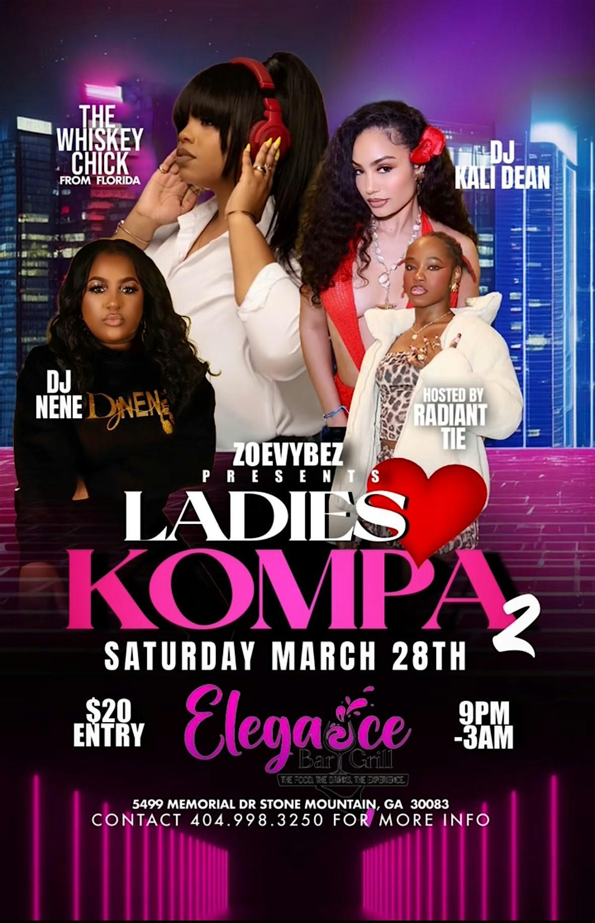 Get ready to dance the night away at Ladies Love Kompa Part 2, an awesome in-person event where the vibes are as warm as the beats. Whether you’re a Kompa pro or just looking to have a great time, this is the place to be. Bring your friends, your dancing shoes, and your best moves for a night full of fun, laughter, and unforgettable moments. See you on the dance floor!