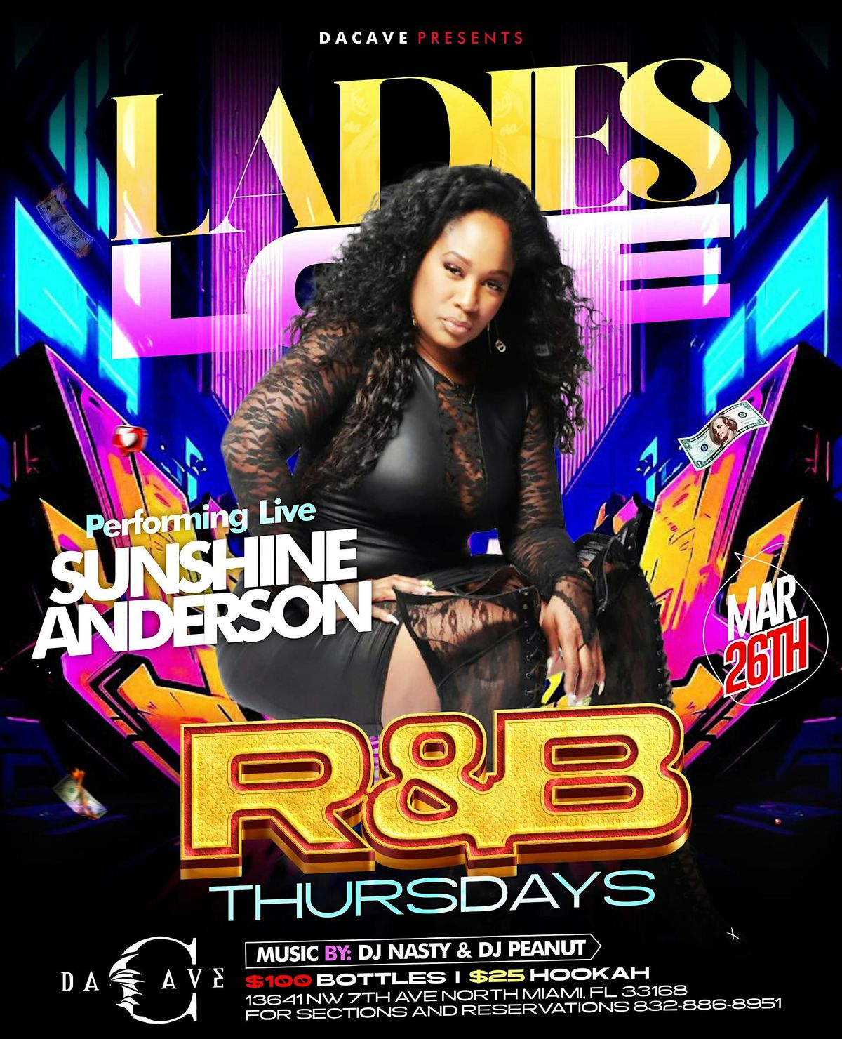 Ladies Love R&B Thursday we got SUNSHINE ANDERSON PERFORMING LIVE MAR.26 at Da Cave early arrival is highly suggested come out and vibe