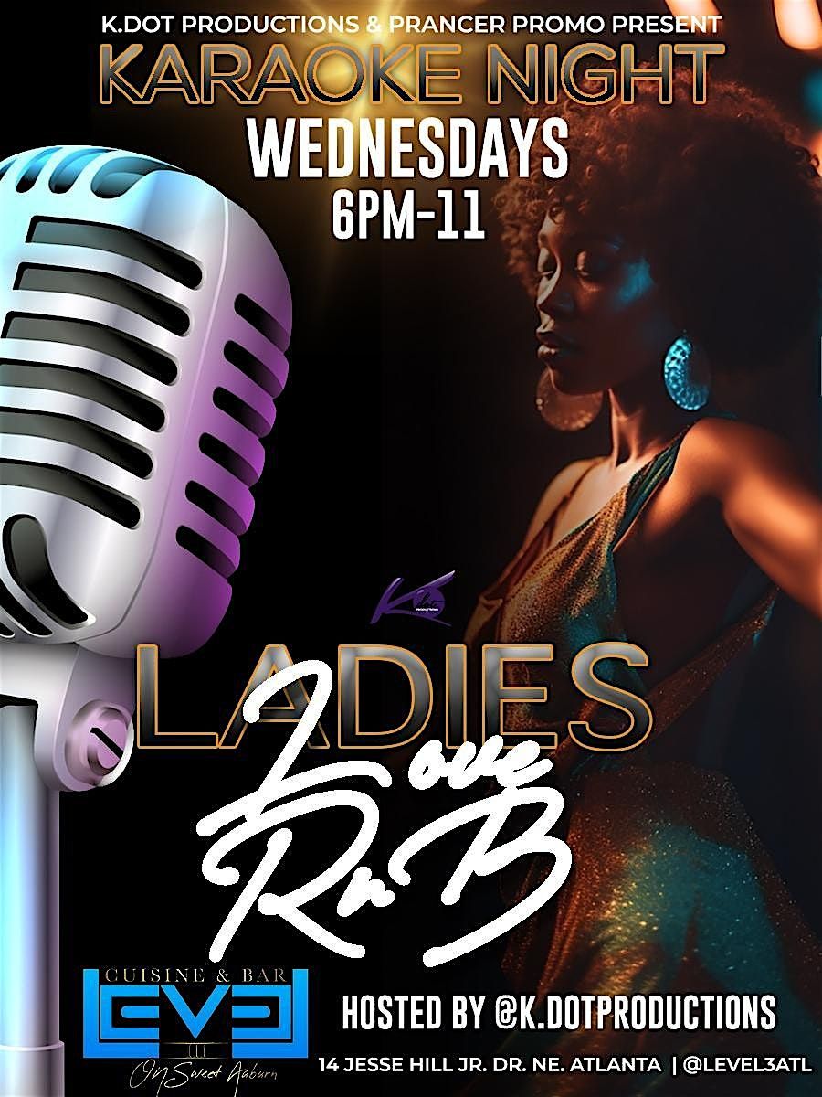 Welcome to Ladies Love RNB (Karaoke Night)! Get ready to sing your heart out at this fun event happening at Level III Cuisine and Bar. Join us for a night of your favorite R&B hits, good vibes, and amazing company. Let loose, grab the mic, and show off your vocal skills! Whether you're a seasoned karaoke pro or a first-timer, this event is perfect for all R&B music lovers. Don't miss out on this fantastic opportunity to have a blast and make unforgettable memories. $5 Shot $15 Hookah $7 Drinks ! You dont want to miss! See you there!