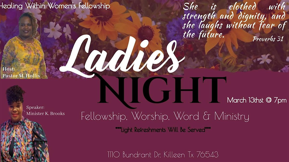 Ladies!!! We invite you to join us for a night of fellowship, worship, word, and ministry. Each one bring one! Cant wait to see you there