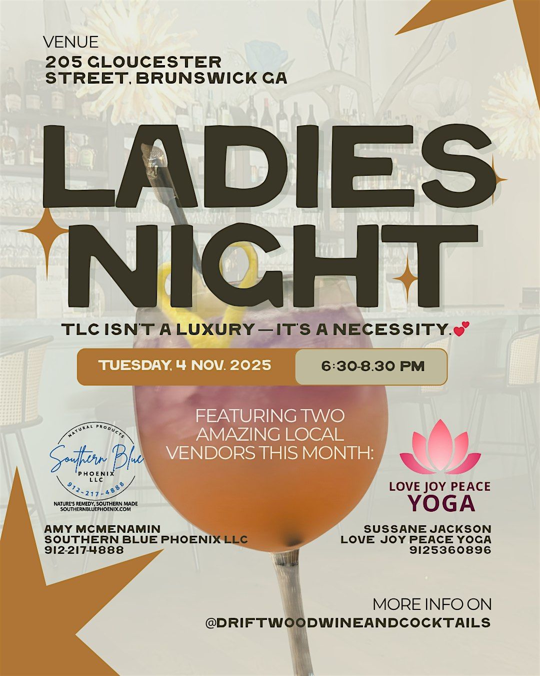 #LadiesNight #DriftwoodWineAndCocktails #SipAndConnect #BrunswickGA #GoldenIslesEvents #CoastalGeorgia #GirlsNightOut #SelfCareEvening #CommunityConnection #CraftCocktails #CharcuterieAndWine #DriftwoodVibes #SupportLocal #WomenInBusiness
