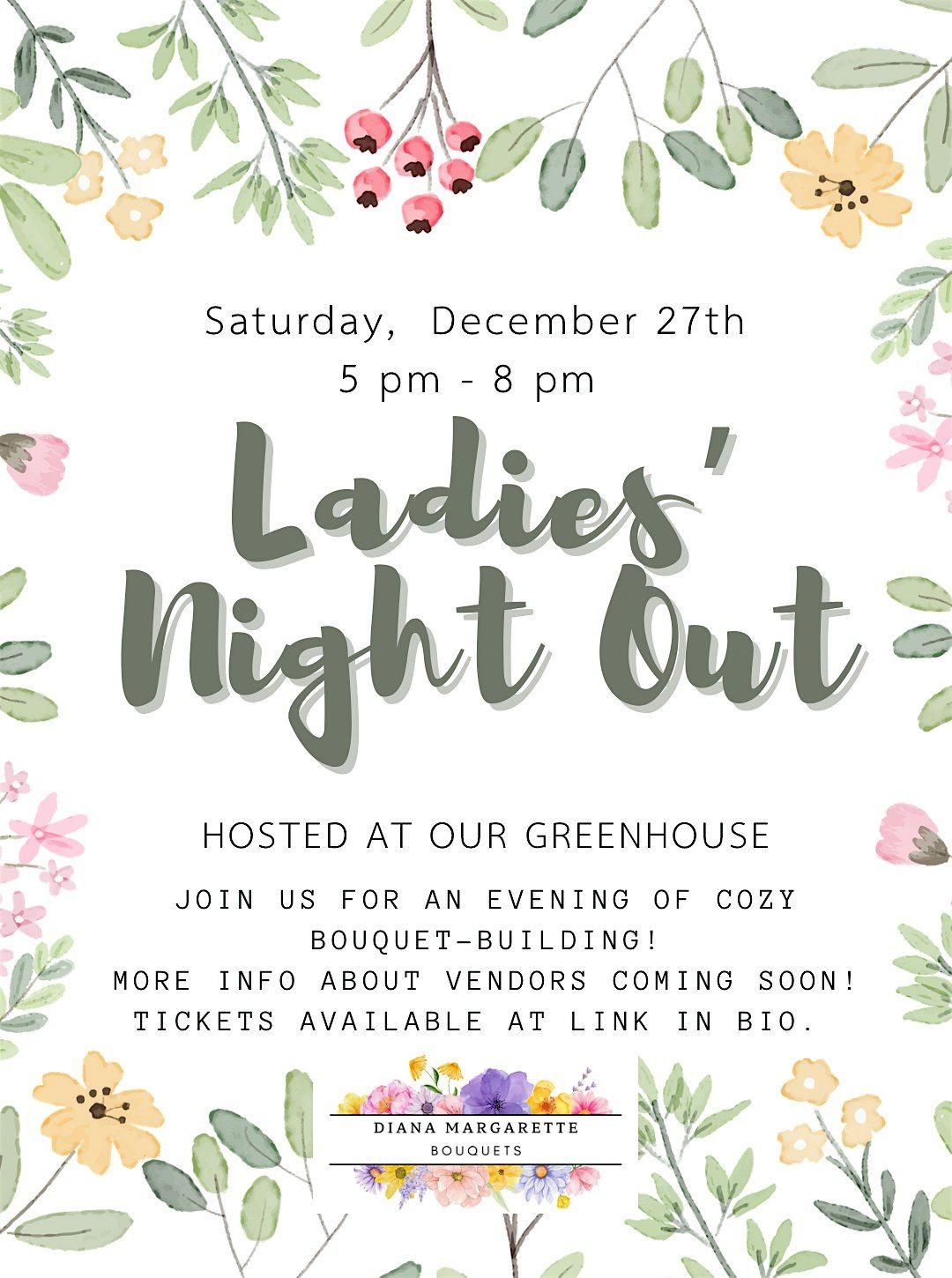 Come join us for a cozy night of bouquet-arranging in our heated greenhouse! We can't wait to see you and the beautiful bouquets you make!