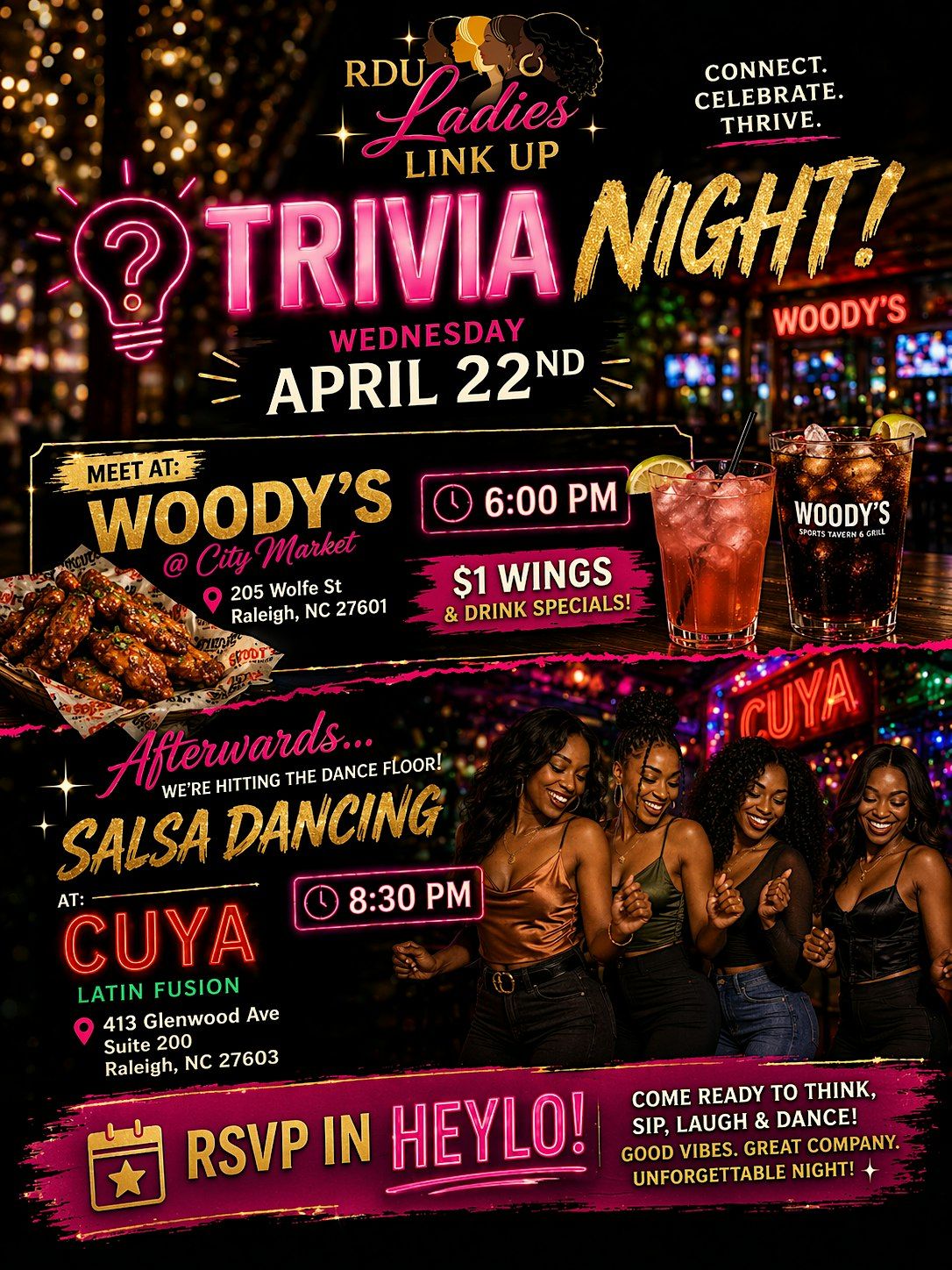 RDU Ladies Link Up Presents: Trivia Night + Salsa After Dark ๐๐ฝ๐ฅ