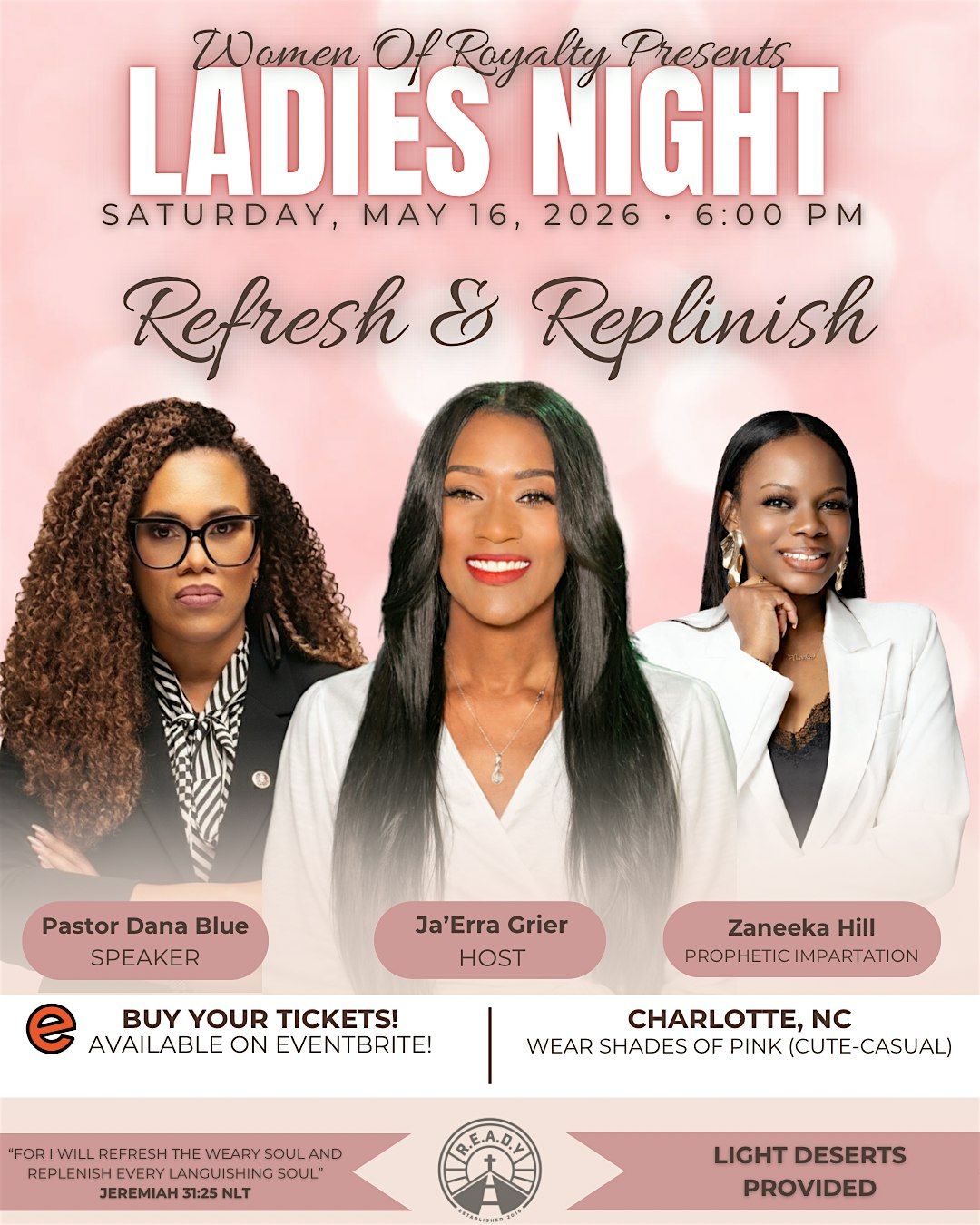 A fun and uplifting night for women to connect, experience healing, and be refreshed through worship, a speaker, and light desserts.About this Event