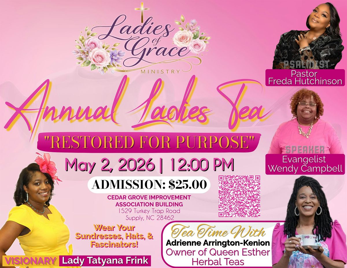 Join us for the Ladies of Grace Annual Tea at the Cedar Grove Improvement Center! It’s happening on May 2, 2026 at 12:00 PM (Eastern Time). Come enjoy a relaxing afternoon filled with great company, tasty treats, and plenty of laughs. Don’t miss out on this wonderful chance to connect and unwind. See you there!