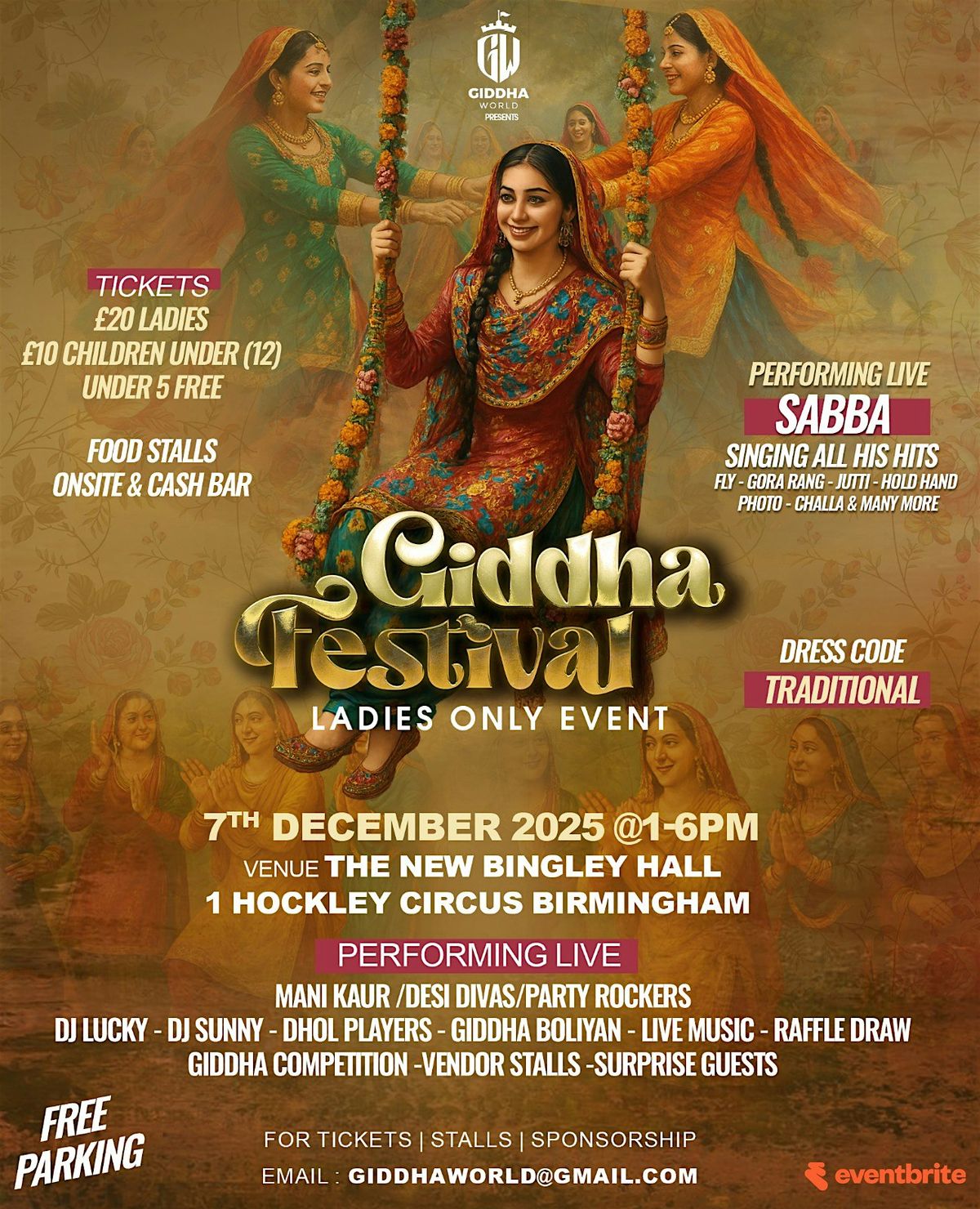 Organised by Giddha World📅 Event Info 🗓️ Sunday 7th December 2025🕐 1 PM – 6 PM📍 The New Bingley Hall1 Hockley Circus, Birmingham B18 5PP
