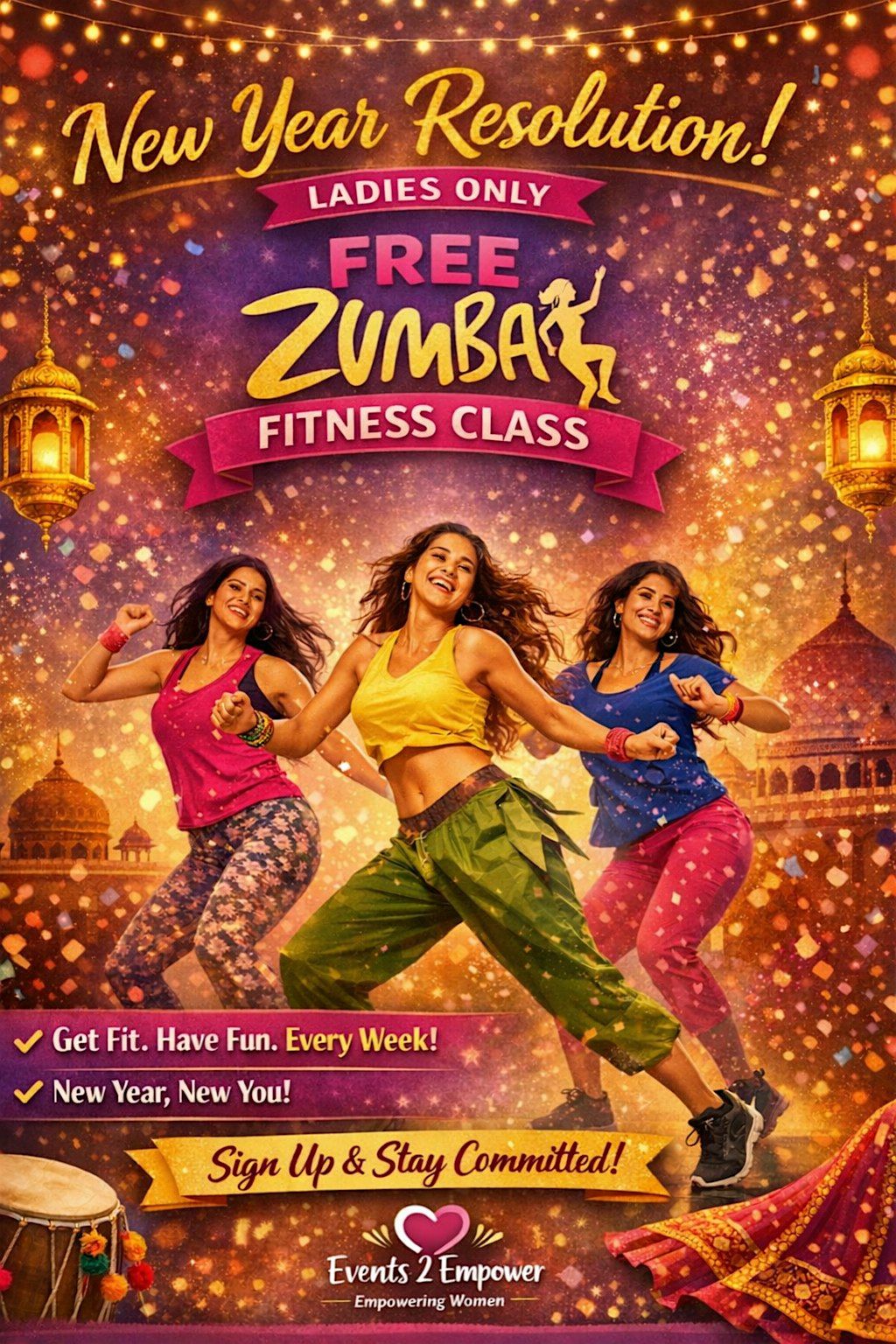 Ready to shake off stress and have a blast? Join our in-person Ladies Zumba sessions where fun and fitness meet. Perfect for all skill levels, this class lets you groove to upbeat tunes while getting an awesome workout.
