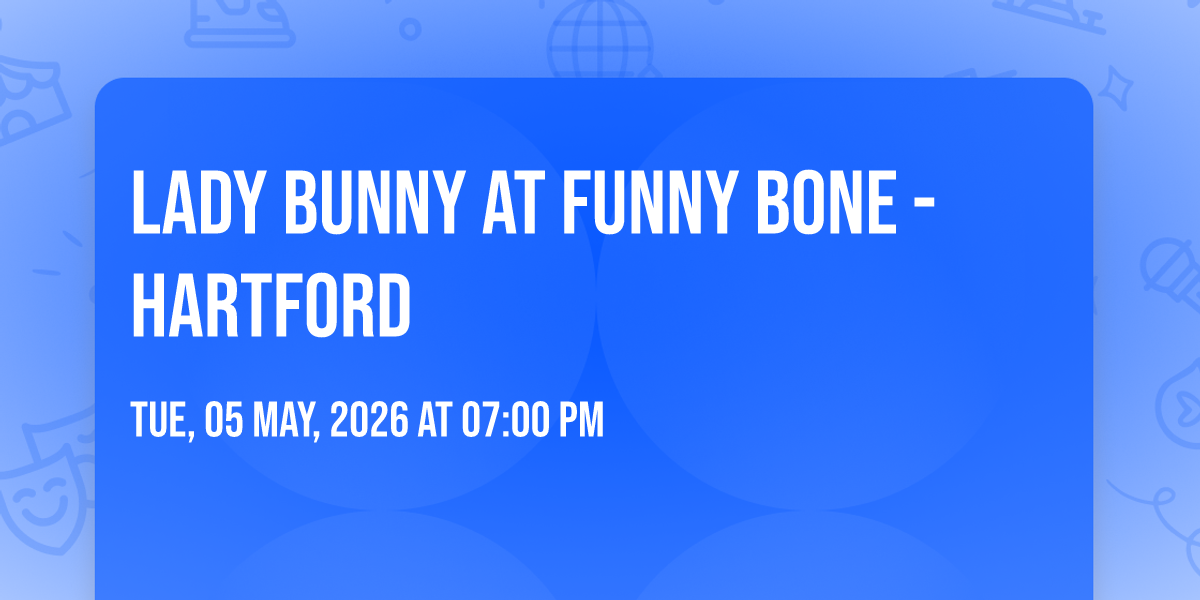 🎉 Welcome to Lady Bunny at Funny Bone - Hartford, where dreams come alive and possibilities are endless! 🏛️ Join us at Funny Bone - Hartford in the heart of Manchester, CT for an event that defies expectations. 📅 On May 5th, 2026 at 07:00 PM, be part of something truly extraordinary as we bring together innovation, entertainment, and pure magic. ✨ Every aspect has been carefully designed to ensure an unforgettable experience for all our guests. Whether you're seeking adventure, inspiration, or simply a break from the ordinary, this event promises to deliver beyond your wildest dreams. 🎊 Prepare for a journey into the extraordinary!