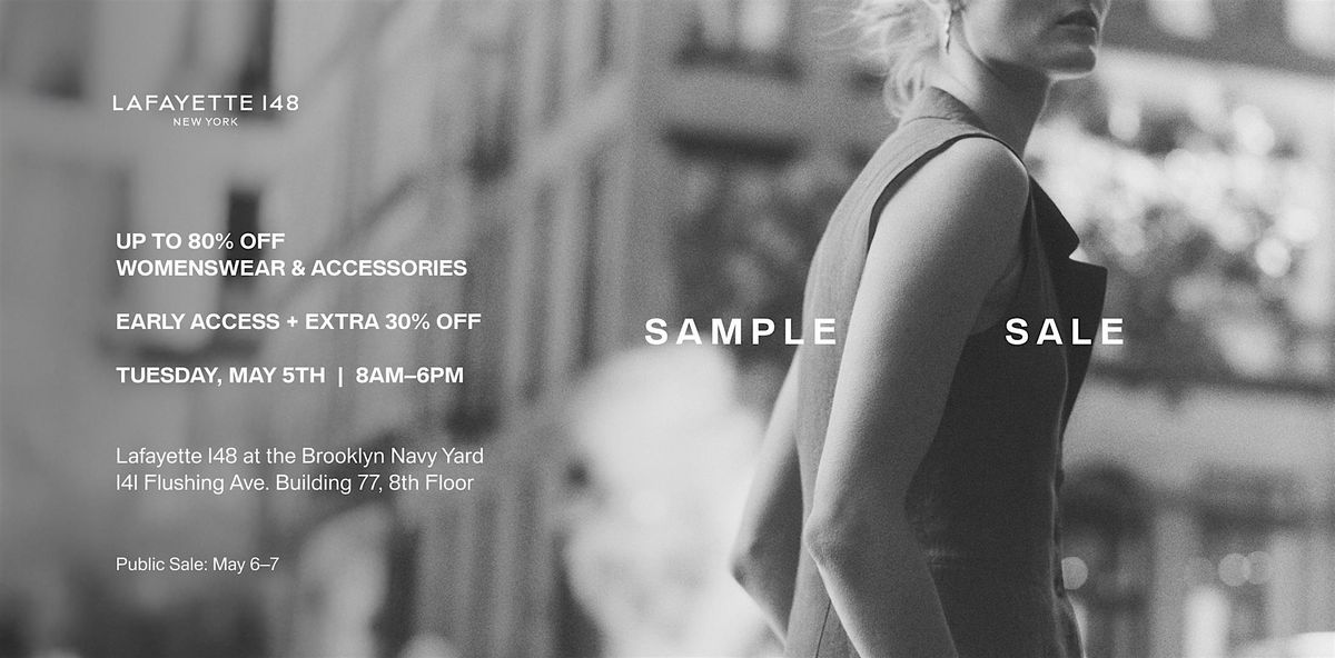 Shop the Lafayette 148 in-person Sample Sale on May 5, 2026, from 8AM–6PM EST. Enjoy early entry and an exclusive extra 30% off your purchase.