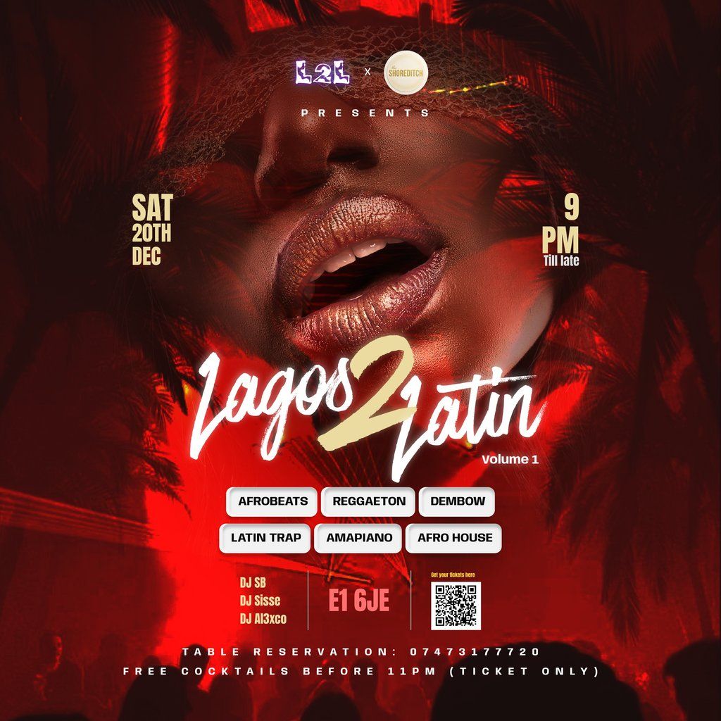 A night of Afrobeats, Amapiano, Reggaeton & Dembow hits Shoreditch. A night of rhythm, culture, & pure energy. 2 Cultures, 1 World.Music Genres : R&B, Latin, Afrobeat, Amapiano