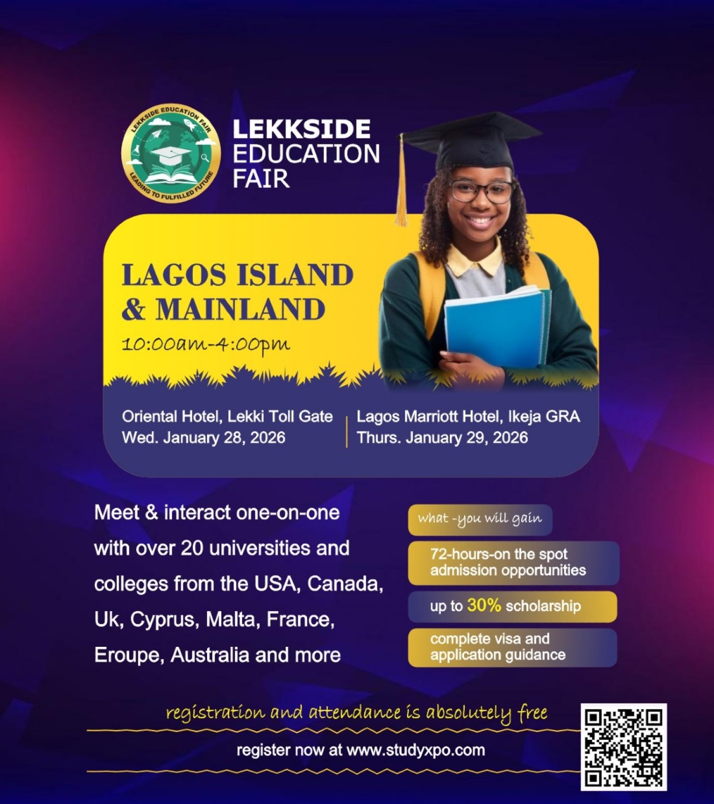 You are invited to attend the Lagos Island International College Fair 2026, taking place at the Lagos Oriental Hotel. This event offers students and parents the opportunity to meet directly with representatives from top international universities and explore study options abroad.