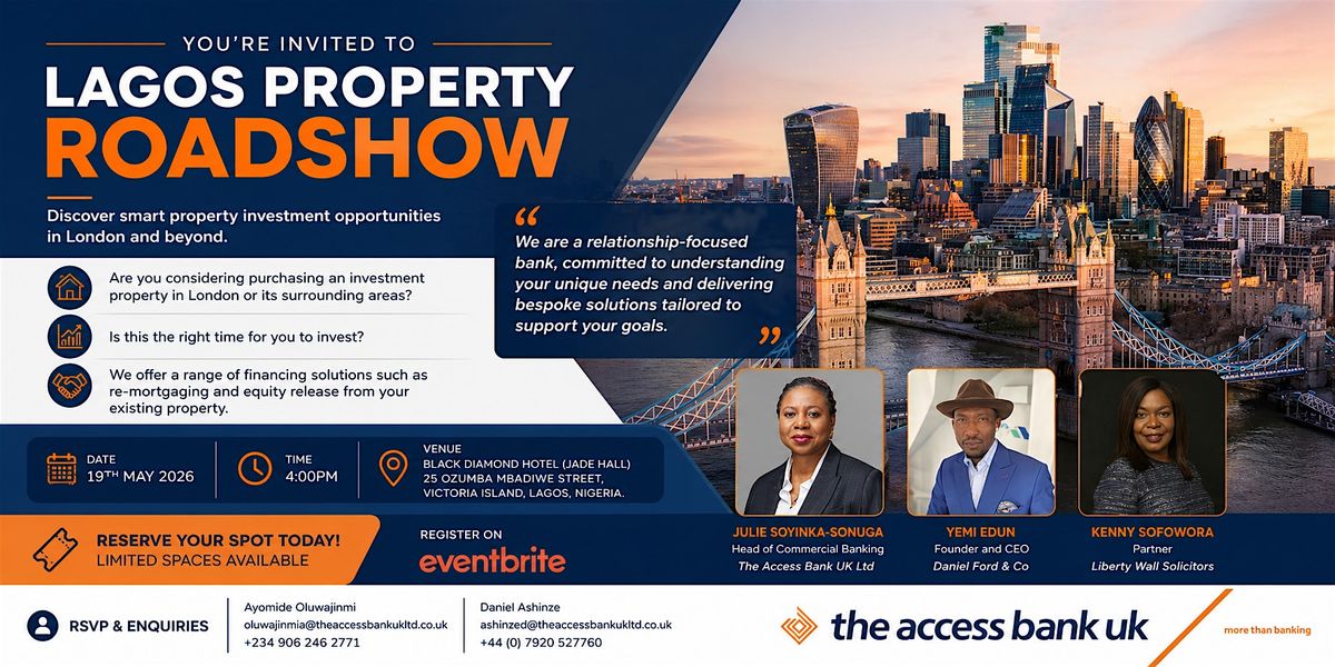 We are pleased to invite you to the Lagos Property Roadshow, an exclusive event focused on unlocking opportunities in the London and wider UK residential property market.