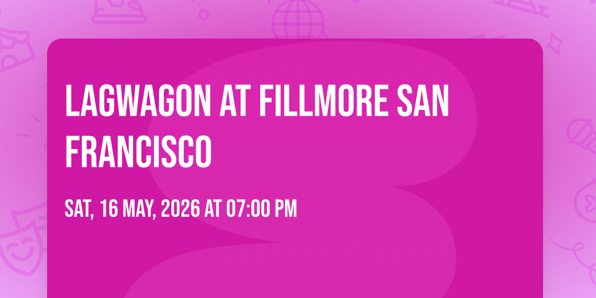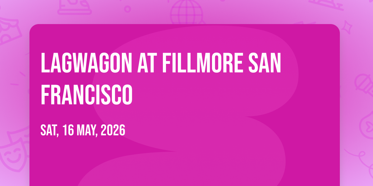 🎉 Prepare to be amazed at Lagwagon at Fillmore San Francisco, the most anticipated gathering of the season! 🌟 Set against the stunning backdrop of Fillmore San Francisco in vibrant San Francisco, CA, this event promises to redefine your expectations. 📅 Mark your calendars for May 16th, 2026 at 07:00 PM and get ready to immerse yourself in an atmosphere of wonder and excitement. ✨ From the moment you arrive, you'll be transported into a world where memories are made and stories come alive. They have crafted an experience that perfectly harmonizes entertainment, innovation, and community spirit. 🌈 Join us as we create moments that will be discussed for years!