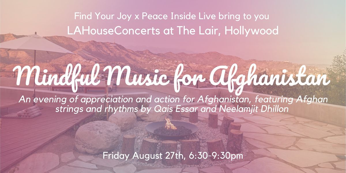 LAHouseConcerts welcomes you to a special heart-centered evening of mindfulness and music at The Lair Hollywood, a private wellness space in the Hollywood Hills. In collaboration with Find Your Joy™ and Peace Inside Live, we intentionally gather to honor and support Afghanistan.