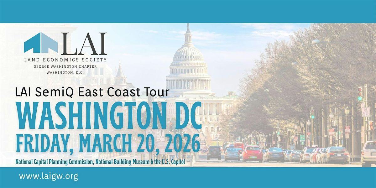 LAIGW, invites members, planning and design professionals, and guests to a one-day symposium exploring the history, present trajectory, and future vision of Washington, DC. This program is part of the LAI SemiQ East Coast Tour: Land Use & History (1776-2026) and part of the United States Semiquincentennial (SemiQ), also called the Bisesquicentennial, the Sestercentennial, America250 or the Quarter Millennium—the 250th anniversary of the United States Declaration of Independence—and we would like to personally invite you to attend!