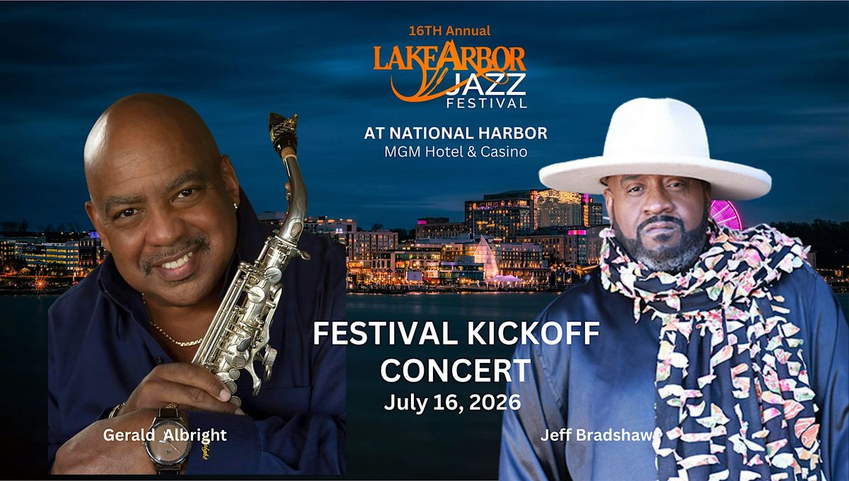 The excitement continues at MGM Hotel & Casino - National Harbor as the Lake Arbor Jazz Festival brings a high-energy evening of smooth jazz and neo-soul. Saxophone legend Gerald Albright and trombone virtuoso Jeff Bradshaw brings powerhouse performances that will set the tone for an unforgettable festival weekend.