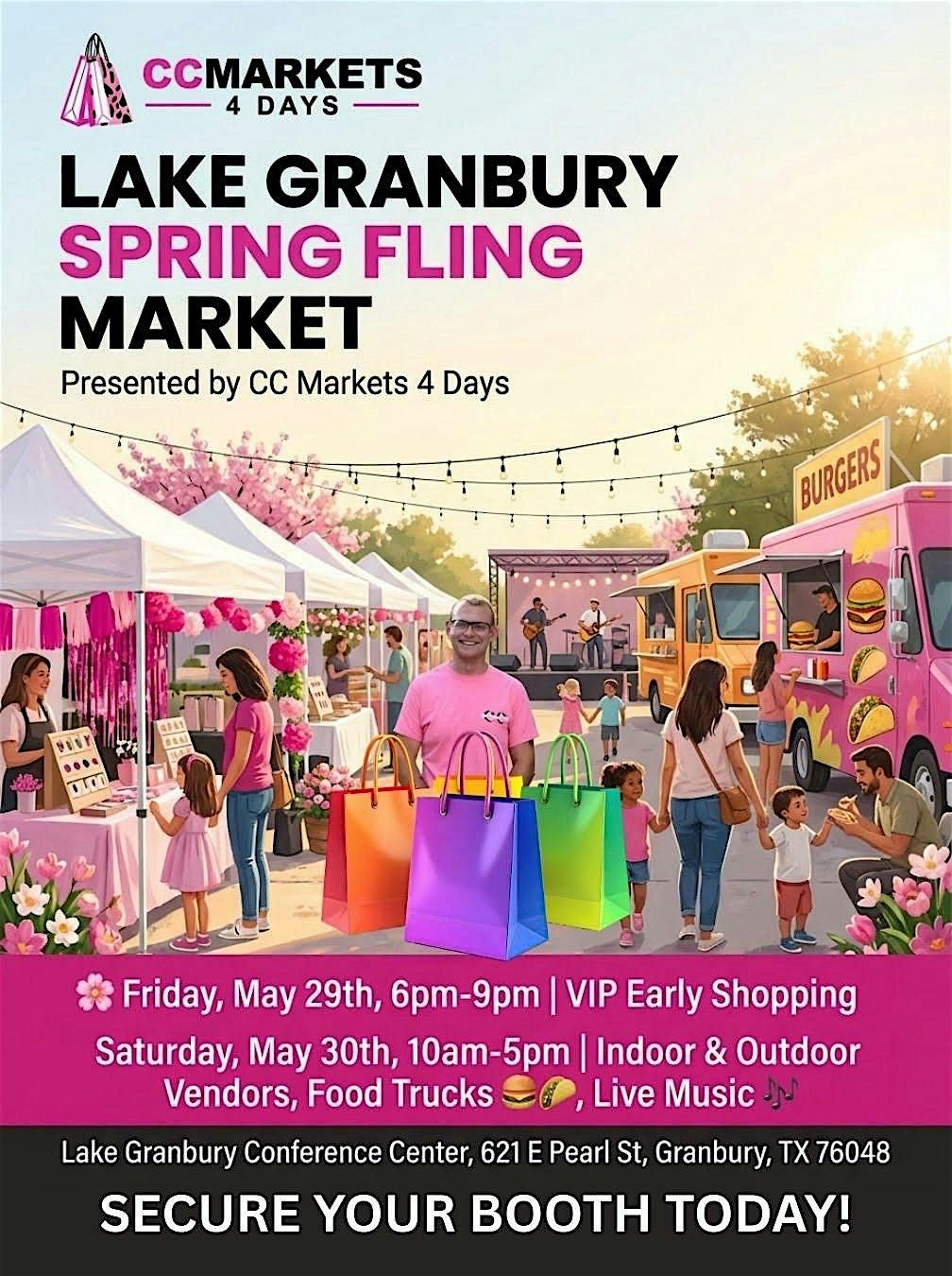 Join us for a two-day Spring Fling Market featuring local small businesses, food vendors, and beautiful lakeside vibes in Granbury! ๐ธโ๏ธ