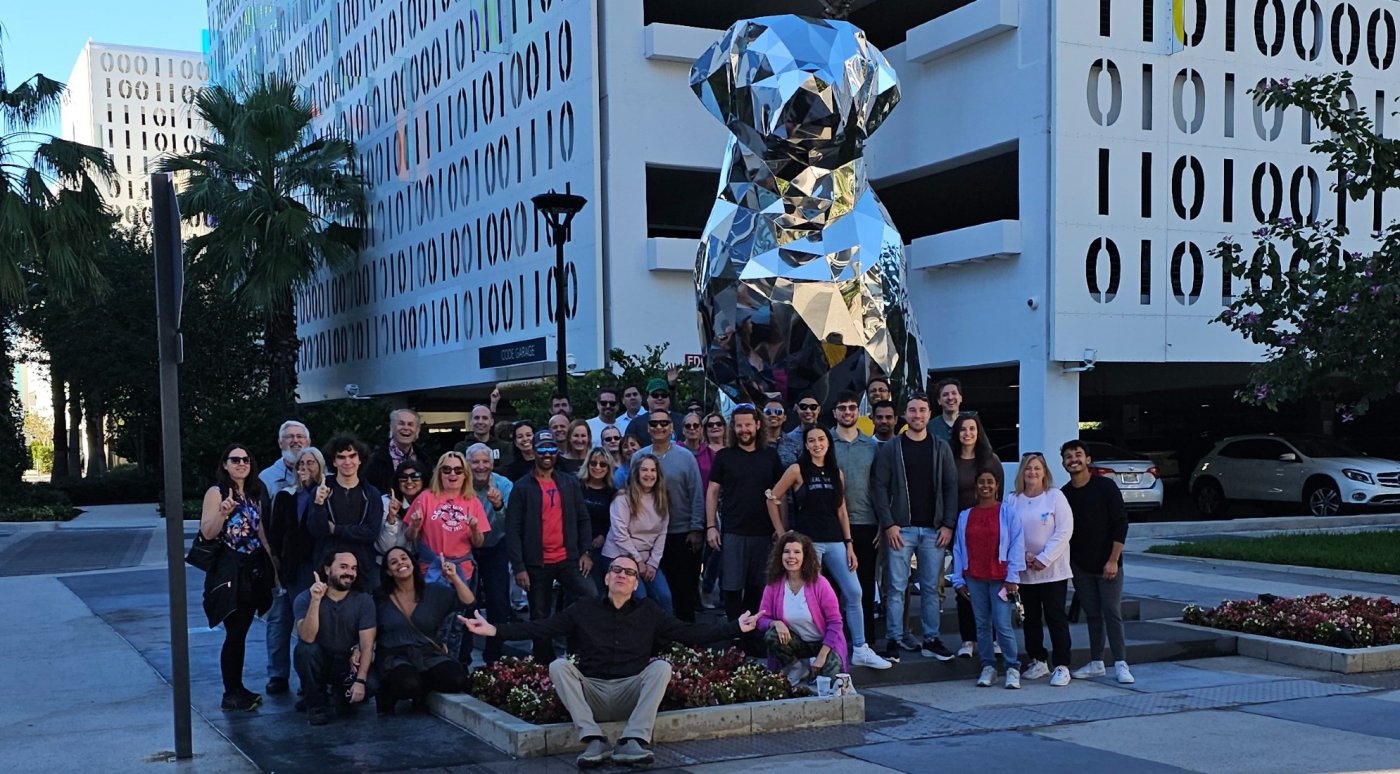 📍 Start & Finish at Disco We meet AND end at Disco, the iconic 35-foot stainless steel dog sculpture at the southeast entrance to the Town Center parking structure. You can't miss it.