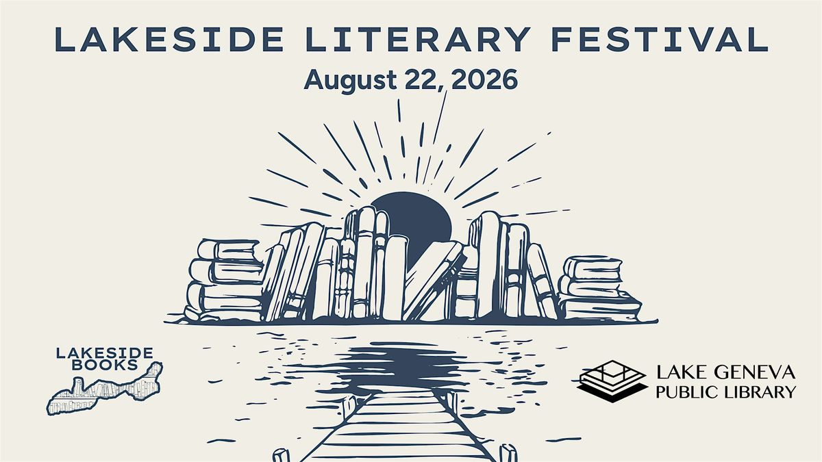 Presented by the Lake Geneva Public Library and Lakeside Books, the Lakeside Literary Festival is a celebration of books, creativity, and community on August 22, 2026, at the Lake Geneva Public Library in Lake Geneva, WI!