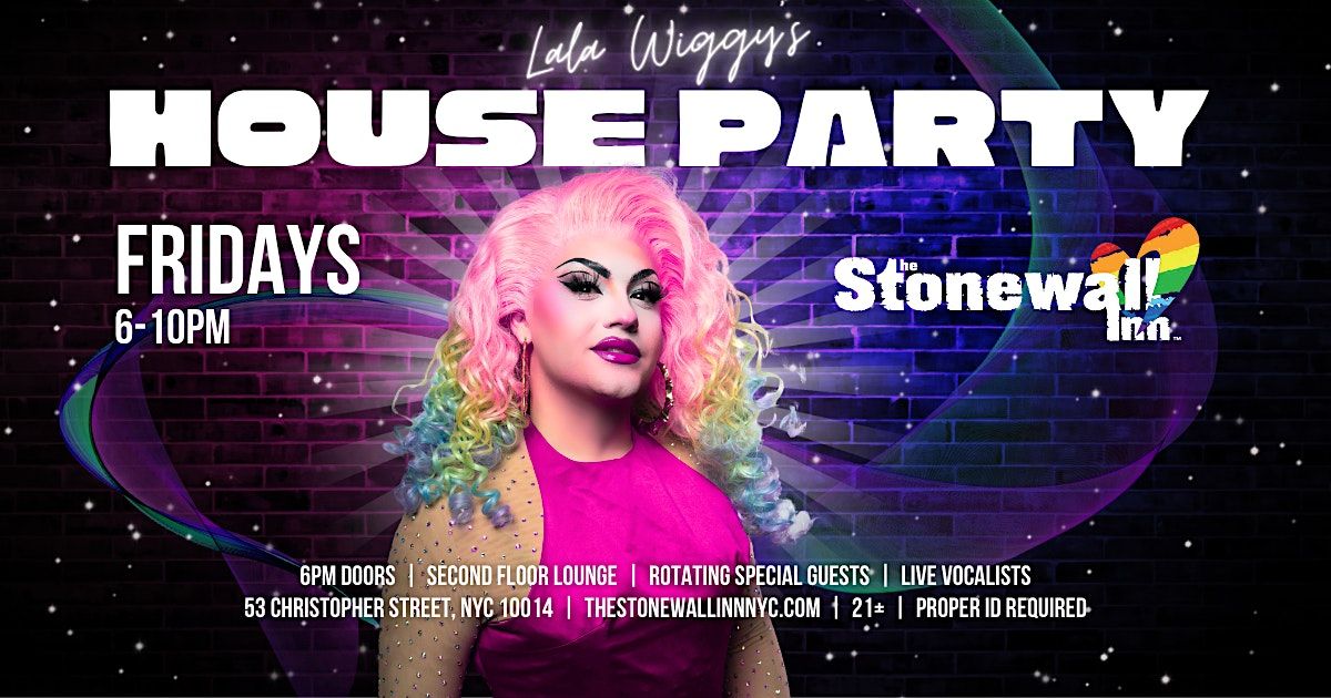 Lala Wiggy's HOUSE PARTY at The Historic Stonewall Inn - EVERY FRIDAY! Come hang out with Lala Wiggy and her band of entertainers ever week for drink specials sponsored by Misguided Spirits, pop-up performers with some of NYC's best local talent, and great company - all followed by karaoke until 10PM!