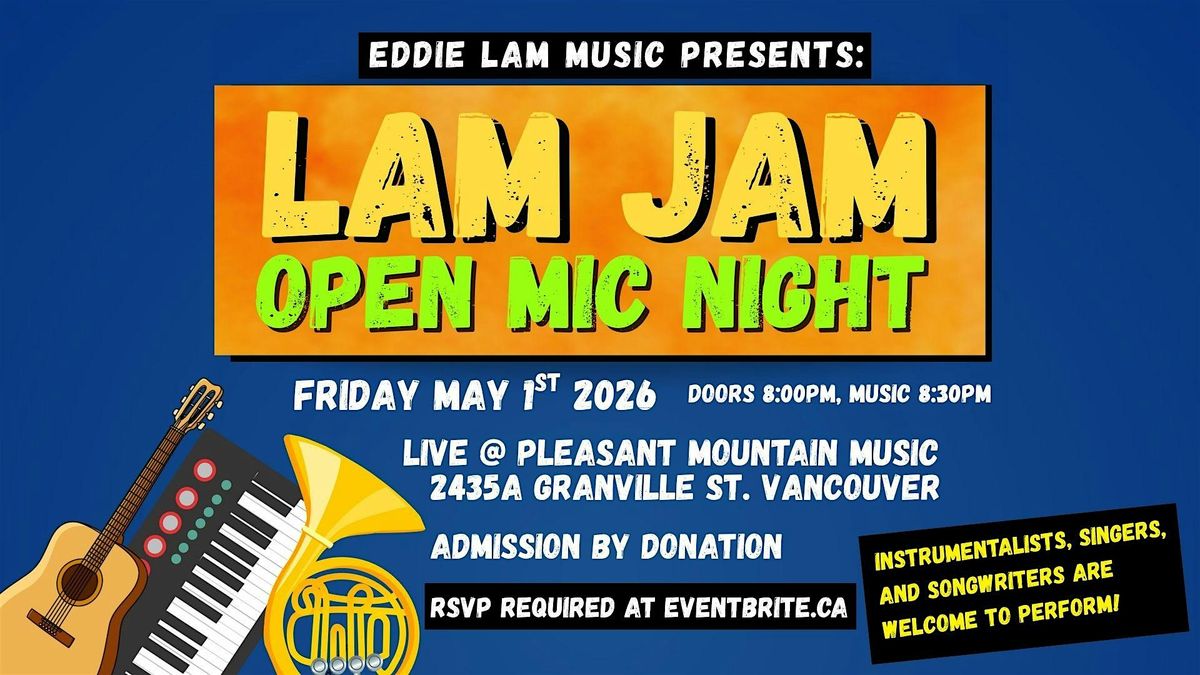 We welcome musicians of all levels incuding beginners, rock stars, and everywhere in between. Whether you're a singer, songwriter, or even an instrumentalist, the Lam Jam is all about YOU coming up on stage having a good time playing music in a supportive environment. You're welcome to jam with other performers if given permission. It's all ages, so students, seniors, and folks in between are invited! It's all taking place at Pleasant Mountain Music in Vancouver, one of the coolest music educational centres in the Lower Mainland. And who knows...there might be a performance or two from their instructors!
