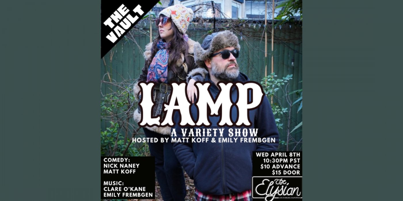 Comedian Matt Koff (The Daily Show) and singer-songwriter Emily Frembgen (SXSW) bring their hit Brooklyn variety show LAMP to the Elysian Vault for one night only! Music, comedy, dry witty banter, this show has it all!
