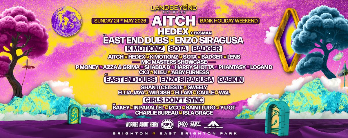 We're excited to introduce Land Beyond: Origins, a one-off, one-day edition of the festival, taking place at East Brighton Park on Sunday 24th May 2026 (Bank Holiday Weekend).