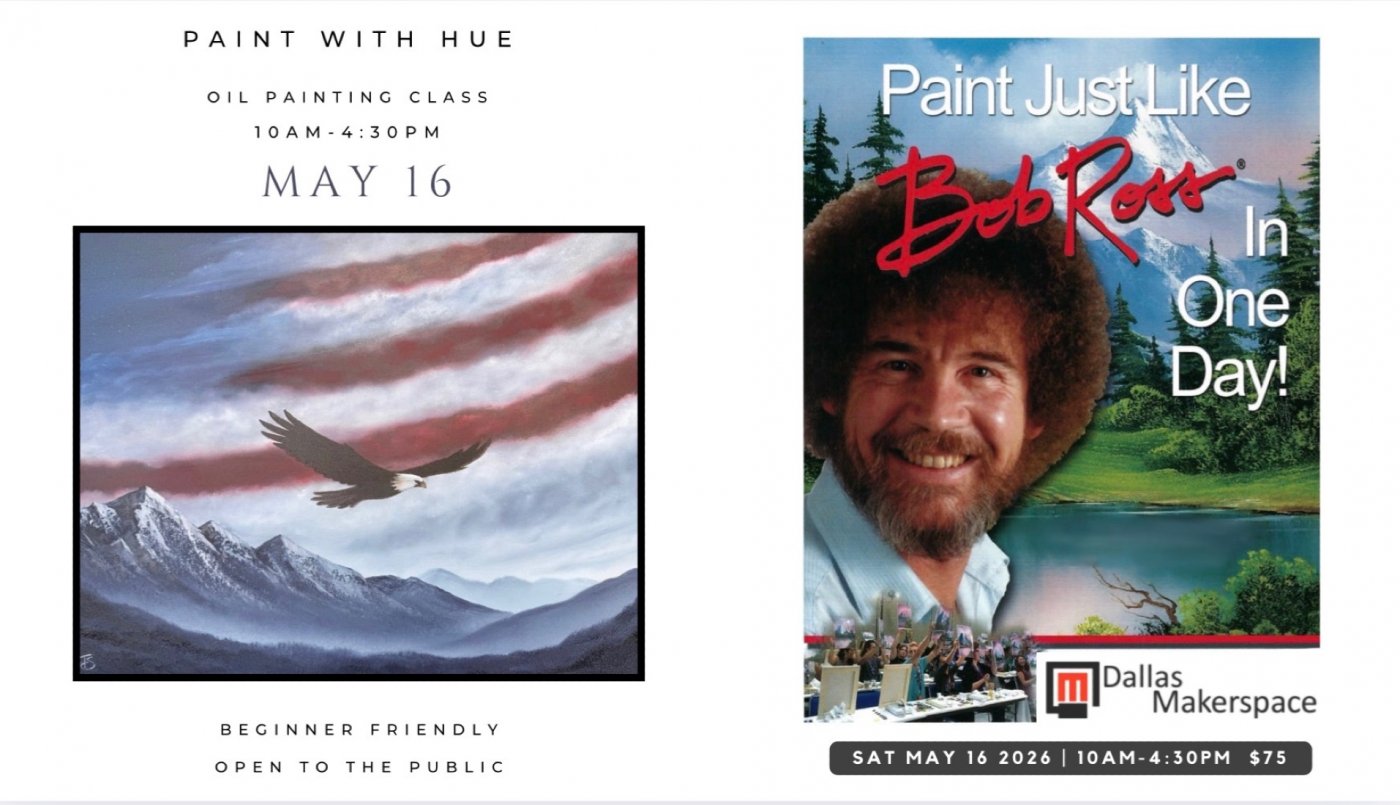 Come join us for a hands-on session oil painting where you can unleash your creativity and learn or practice techniques as we paint a landscape scene just like Bob Ross. Even beginners can use these wet on wet oil painting techniques used by well known painters like Bob Ross and Bill Alexander to create an oil painting they’d proudly hang on their wall in just one day!