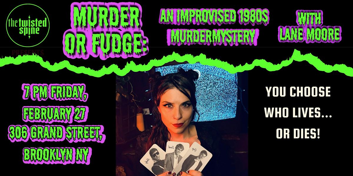"M**der or Fudge: An Improvised 1980s M**der Mystery" is a new horror comedy show created by Lane Moore, where *you* choose who lives...or dies. Using 1980s teen board games and audience participation, host Lane Moore leads you through a wild ride of a totally improvised 1980s M**der mystery. Will Lane find love in the 1980s, or, will one (or all) of her suitors fail to make it out alive?
