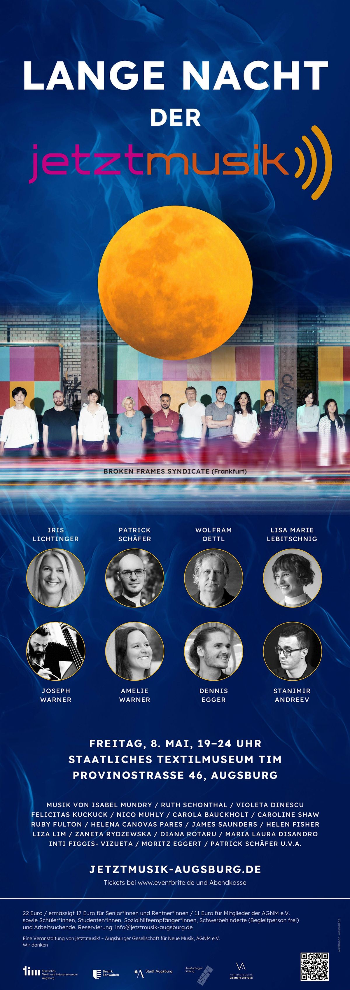 Aber auch die Augsburger Szene wird mit herausragenden innovativen Künstlerpersönlichkeiten auf dem Podium im tim stehen und dieser LANGEN NACHT DER JETZT:MUSIK! ihre eigene Prägung verleihen.