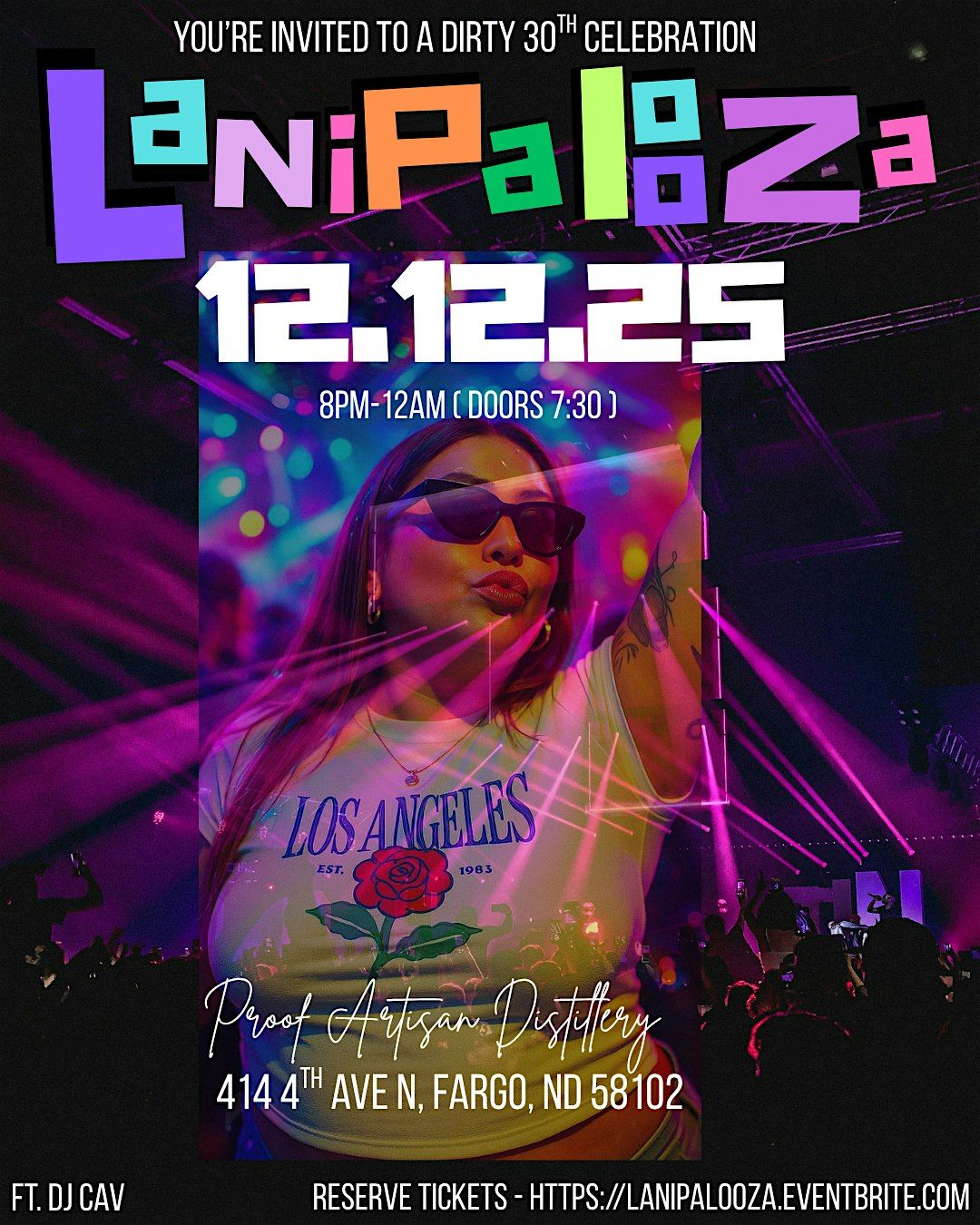 LANIPALOOZA 2025 - A DIRTY 30TH CELEBRATION! Please join Lani as she says goodbye to her twenties in full festival fashion. DOORS @7:30PM