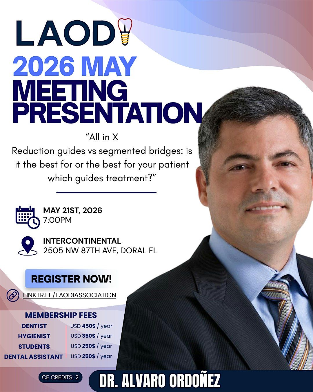 El Dr. Álvaro Ordóñez este 21 de mayo. Con el tópico:“All in XReduction guides vs segmented bridges"