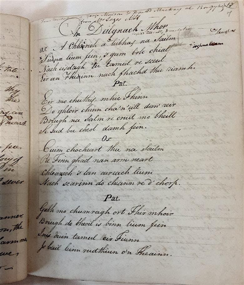 A rare opportunity to experience the legendary heroic ballads of Gaelic Scotland, sung live by Gaelic singers Rob MacNeacail and Bria Mason and on display in manuscripts and early printed collections from the Centre for Research Collections. Dr. Anja Gunderloch and Dr. Duncan Sneddon will give an introduction to the heroic ballad tradition and the materials on display, and Rob and Bria will sing legendary tales: how the heroes got their marvellous swords from a Norwegian blacksmith, Fraoch's fatal battle with a monster in a loch, how jealousy and treachery led to the death of Diarmaid... and more!