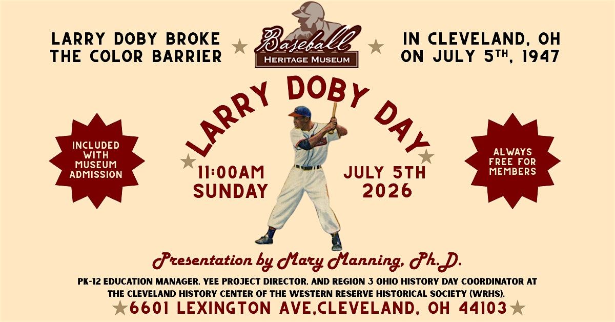Learn about the life, trials and and triumphs of Larry Doby as we celebrate Larry Doby Day! With presenter Mary Manning PhD.