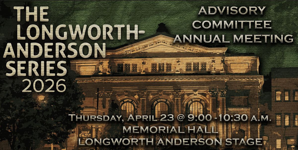 Upon arrival, please meet in the second-floor hallway outside the theater to grab refreshments. The meeting will be held on the Longworth Anderson Stage.