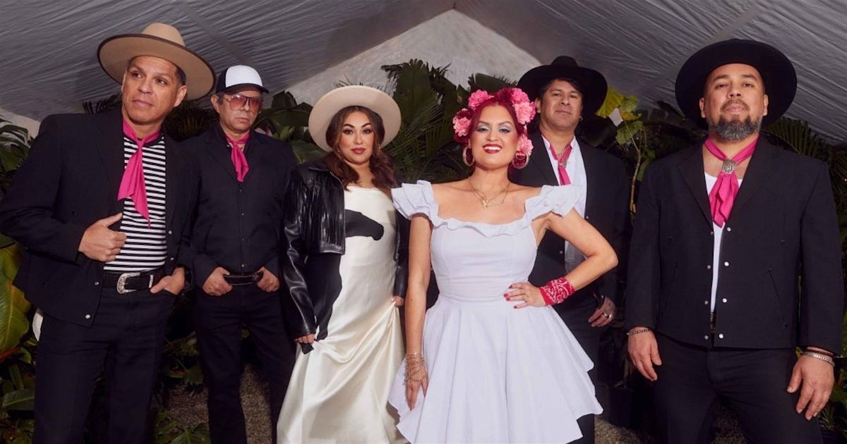 In an ideal double bill, Discos Resaca Collective opens with a set of new-school cumbia. The eight-member Bay Area combo brings together a cast of gifted bilingual musicians who mix traditional cumbias with hip-hop and oldies, while also drawing on rancheras, salsa and soul. Rather than making audiences woozy, Resaca, which means hangover in Spanish, leaves audiences buzzed with energy. The two-time album-of-the-year winners (KQED 2020 and Vogue Mexico 2023) recently released their first LP, Y Te Cuento, an album of original cumbias with vocals by Las Mariposas del Alma, the Oakland-based Meza sisters who lead the collective with soaring harmonies.