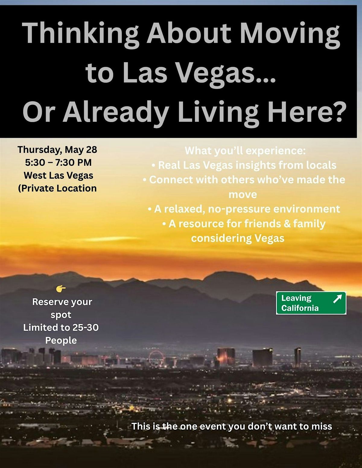 This is a private, small-group event designed to give you real insight into what life in Las Vegas is actually like — beyond what you see online.