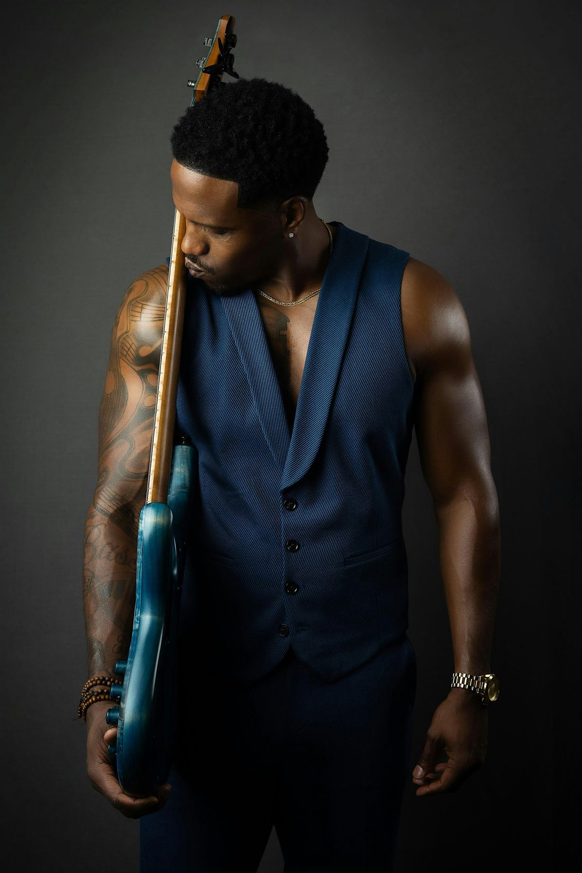 Born and raised in Kansas City, KS, Julian Vaughn was primarily a drummer when he picked up the bass guitar. He developed his playing style growing up in the church where his grandfather pastored — later led by his father — and eventually began playing concerts and gospel recordings.