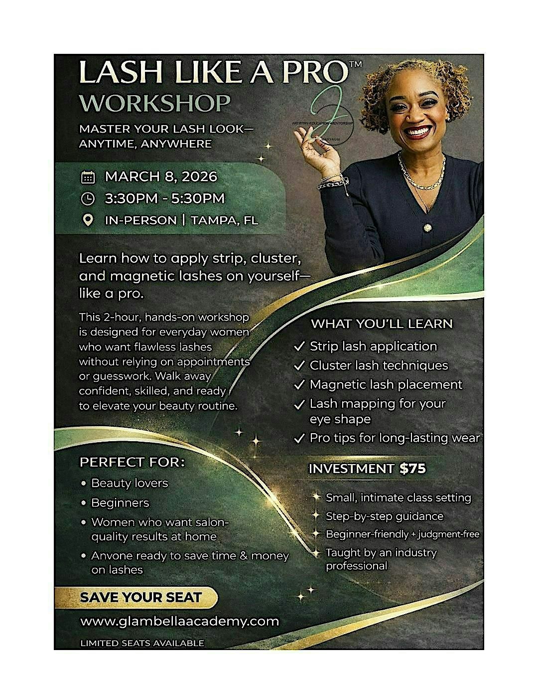 Attendees can expect a supportive, fun learning environment, practical techniques you can use immediately, and the confidence to elevate your beauty routine without relying on salon visits. Whether you’re getting ready for brunch, a night out, or content creation, you’ll leave with the skills to apply lashes like a pro every time.